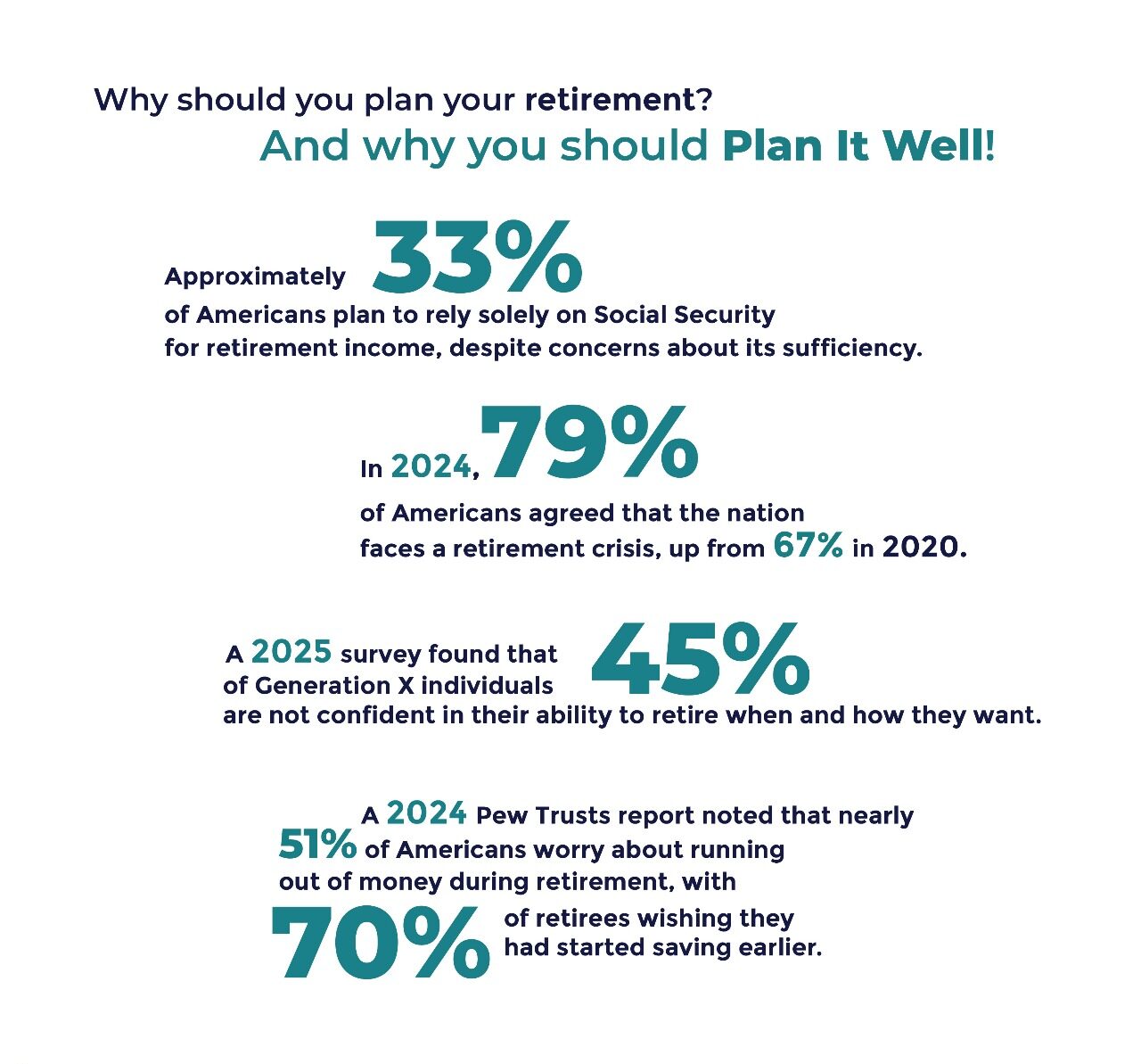 In the United States, approximately 60% of workers do not have an adequate retirement plan, putting their future financial stability at risk. According to recent data, only 40% of Americans have calculated how much money they will need for retirement, and less than 30% are systematically saving for this purpose. These numbers are alarming and highlight the importance of starting retirement planning as soon as possible. We invite you to take action today: evaluate your finances, set clear goals, and consider savings and investment options. Don’t leave your future to chance; every day counts in building a secure and comfortable retirement.